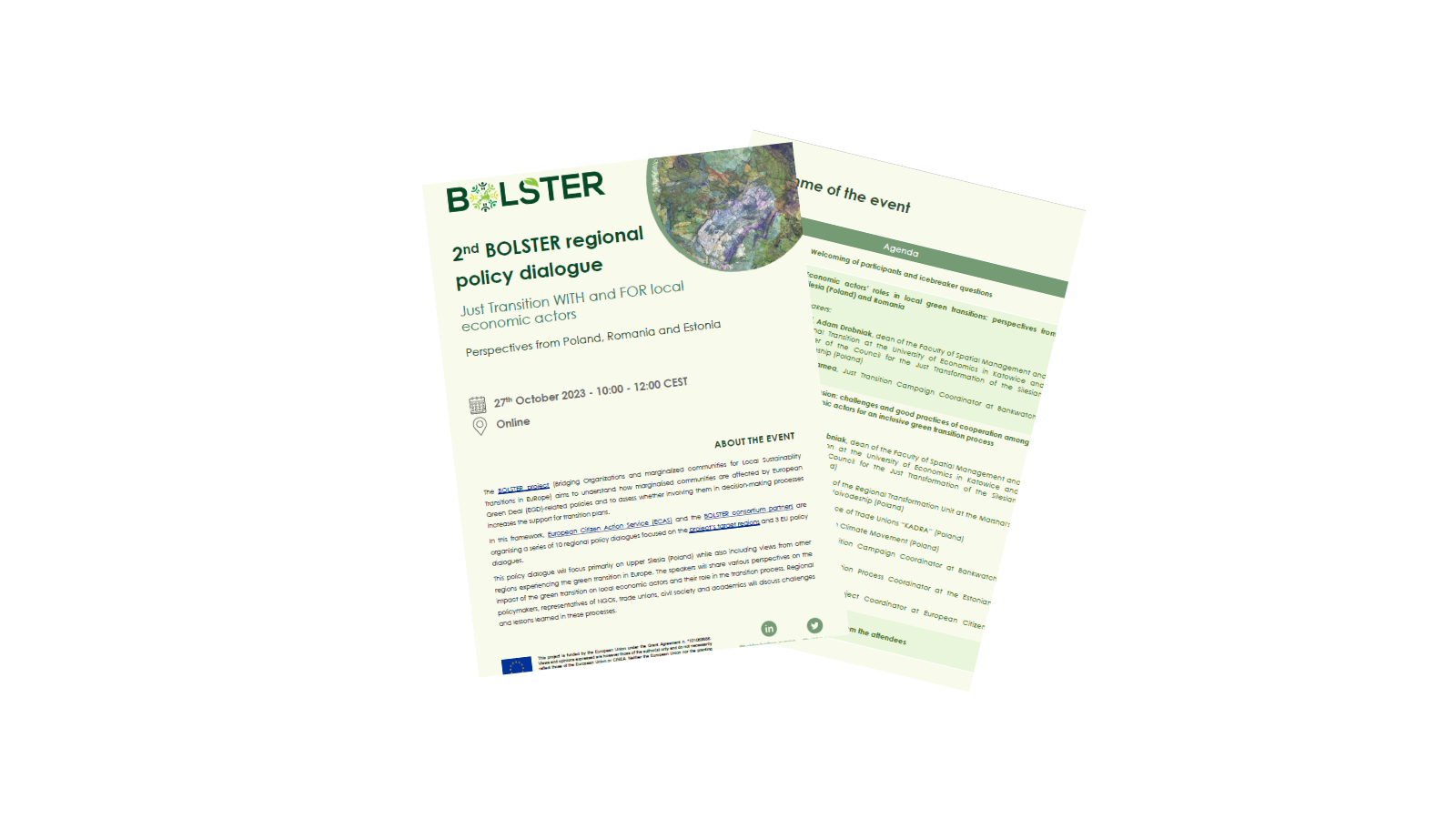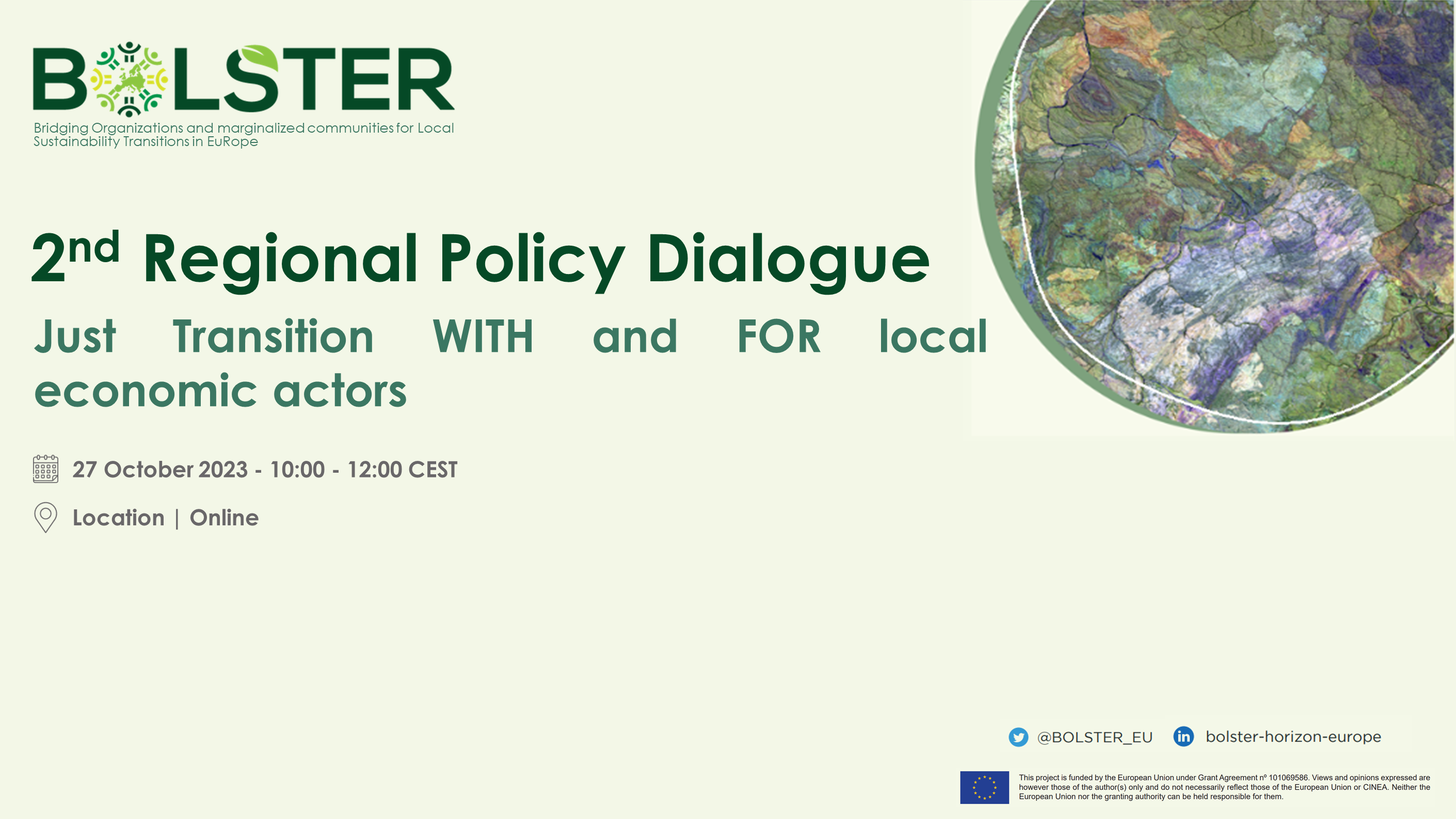 The BOLSTER project (Bridging Organizations and marginalized communities for Local Sustainability Transitions in EuRope) aims to understand how marginalised communities are affected by European Green Deal (EGD)-related policies and to see whether involving them in decision-making processes increases the support for transition plans.