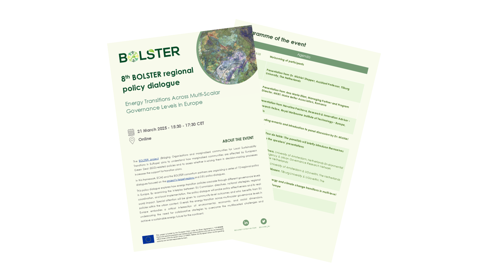 The BOLSTER project (Bridging Organizations and marginalized communities for Local Sustainability Transitions in EuRope) aims to understand how marginalized groups are affected by European Green Deal (EGD) policies and to assess whether involving them in decision-making processes increases the support for transition plans.