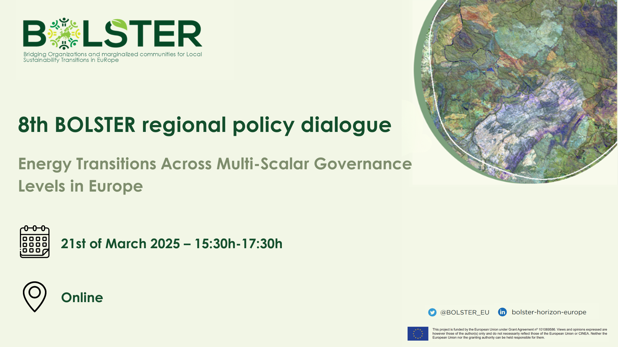 The 8th BOLSTER regional policy dialogue will take place online in English on Friday, 21 March, from 15:30 to 17:30 CET.