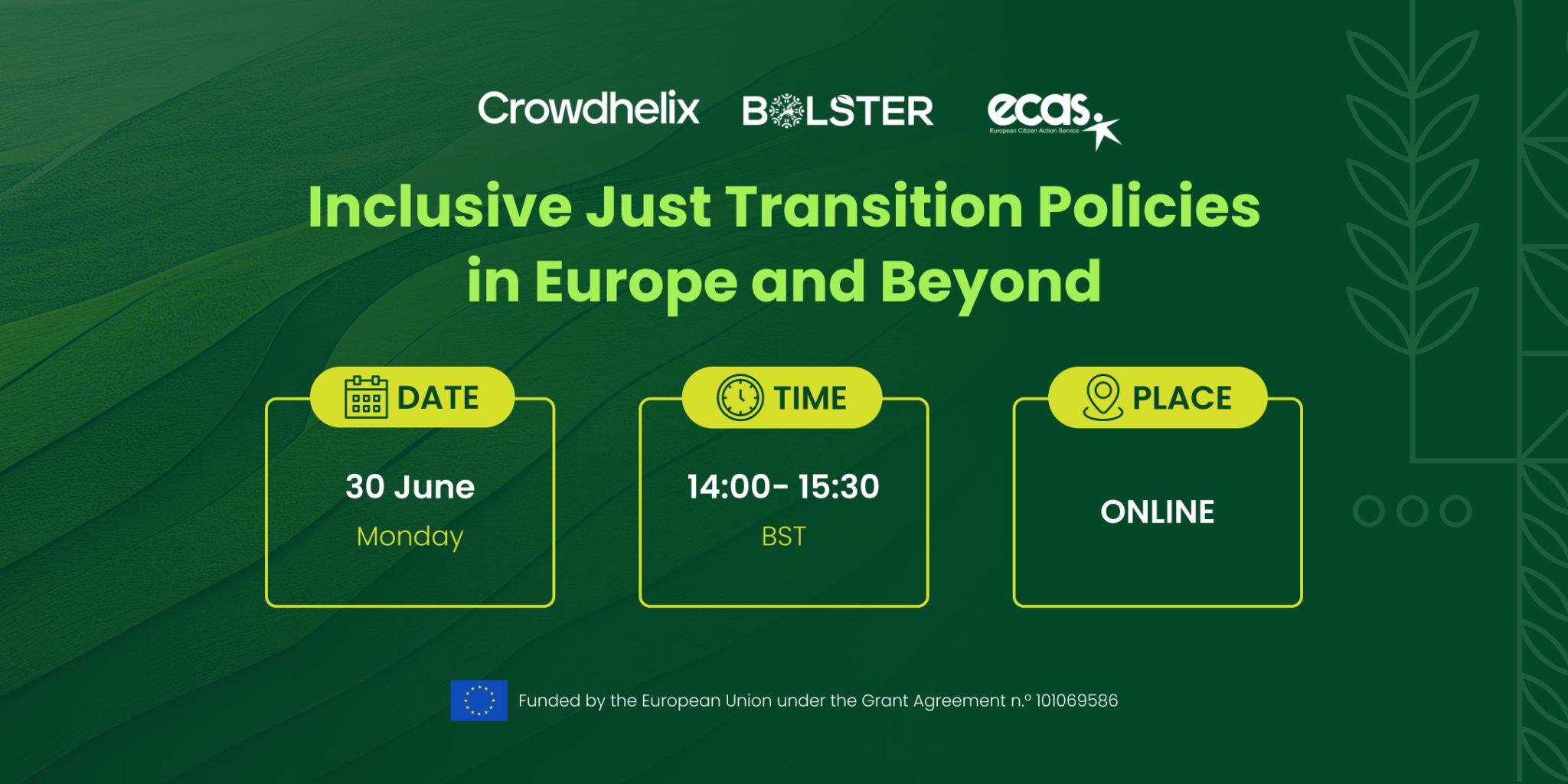 Join us for an engaging online policy dialogue as part of the BOLSTER project – a Horizon Europe initiative that explores how marginalised communities experience and influence climate transition policies across Europe and beyond.This final Just Transition Helix Community and 10th Regional Policy Dialogue event is jointly organised by Crowdhelix and ECAS, brings together international experts and case studies from Ecuador, Chile, Argentina, and Ukraine to explore how citizen engagement tools – like participatory mapping, digital town halls, and regional dialogues – can drive more inclusive and just sustainability transitions, particularly in low-resource and high-vulnerability settings.