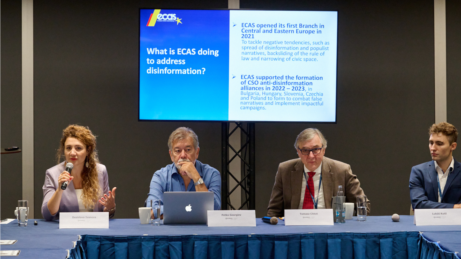 During the event, ECAS presented its “Framework for Civil Society Action Against Disinformation” – created on the basis of its experience in building coalitions against disinformation in 2022 – 2023 in Bulgaria, Slovenia, Hungary, Czechia and Poland. The ensuing discussion presented an opportunity to look into possible actions and narratives to counter disinformation attacks in CEE and promote network building in the post EU-election period.